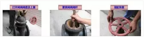 给水主闸阀阀盘扳动正常但不能打开或关闭水阀,多为闸阀阀杆锈蚀丝牙损坏造成,低成本且较快速、有效的处理方式是加工、更换阀杆。