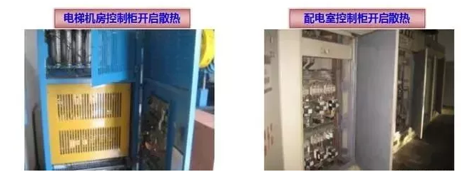控制电柜安装于锁闭房间内(如:电梯机房、配电室等)的情况下,除空调、通风等降温措施外,自身散热降温方式是打开控制电柜门,避免热量在电柜内的积聚、降低电器使用环境温度,减少故障的发生。