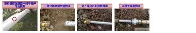 2、地面暗埋管道(如:水管、天然气管)维修更换中对不便开挖地面(如公路等)位置管道的处理技巧