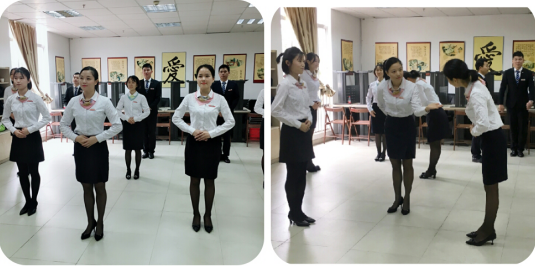 再来,就是我们客服模块最受期待的礼仪操比赛,伴随着主题曲《微笑说你好》各参赛选手闪亮登场。结合物业服务特点及商务礼仪文化,盛世嘉物业的员工们编排了各具体特色的礼仪操,将站姿,走姿,蹲姿,迎、送宾客礼,鞠躬礼等进行了全方位标准化展示。端庄的仪态、优雅的举止、由内而外散发出服务行业的职业魅力。