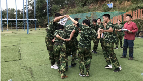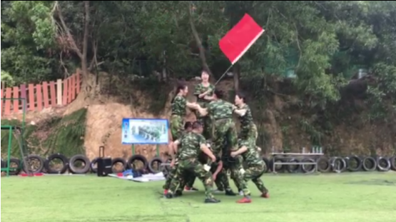 16日上午10:30左右,全体拓展员工到达南澳拓展基地,全体人员被要求快速换装迷彩服。首先进行的是破冰、分队环节,全体人员被分为两个队伍,各队选出队长,并给本队命名、设计口号和队形;队伍中的成员虽然彼此认识,但却并不熟悉,通过破冰和分队环节更一步加深了彼此间的了解,队员们积极的参与到团队建设当中,呈现了优秀的成果。
