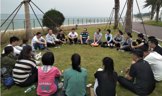 在激情99秒项目中,需要所有队员在99秒内配合完成解手链、移花接木、一圈到底、激情节拍4个小项目,在队员们的全力配合、互相打气下,两个队伍都以不到99秒的优秀成绩完成了任务。达芬奇密码项目是一个既要策略又要体力的项目,怎样合理安排行进路线,如何合理分工确保最后胜利,通过这个项目团队得到了很好的锻炼。盲人方阵项目,需要所有队员在完全看不见的情况下,用培训师给的绳子围成一个面积最大的正方形,这个项目很好的锻炼了队员们彼此间的沟通交流,并充分挖掘发挥了个人的优势和特点。在最后呼吸的力量项目中,充分体现了“劲往一处使”的强大力量,让大家感受到了团队的力量。