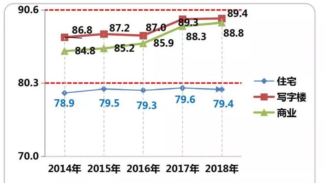 调查显示,2018年度物业管理业主满意度深圳指数为80.3,较2017年下降了0.6,深圳指数呈波动变化趋势,但变化幅度不大。在不同物业类型中,写字楼物业满意指数最高,为89.4,同比上升了0.1;其次为商业物业,满意指数为88.8,同比上升了0.5;住宅物业满意指数较低,为79.4,同比下降了0.2;在不同资质企业中,一级资质企业满意指数最高,为82.0,同比下降了1.1;二级资质企业的业主满意指数为80.1,同比下降了0.7;三级资质企业的业主满意指数为77.3,同比下降了0.8。