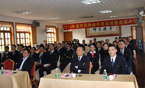 12月27日,2013年盛世嘉物业年终总结暨表彰大会在半里山谷会议室顺利召开。花伴里集团常务副总裁陈镇财、总裁助理易剑、行政人力资源中心总监刘建及物业公司主要领导,各职能部门人员、各管辖区域负责人等60多人参加了会议。