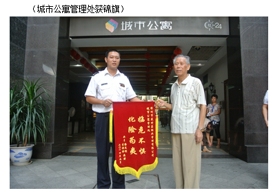 同日下午14:50分左右,城市公寓1230房因业主一时疏忽而出现火情,管理处工作人员第一时间赶赴现场,及时扑灭火源,避免了一场灾难,随后又积极协助业主清理了事故现场。事后,受到业主高度的赞扬,并获得业主赠与的“临危不惧化险为夷”锦旗一面。