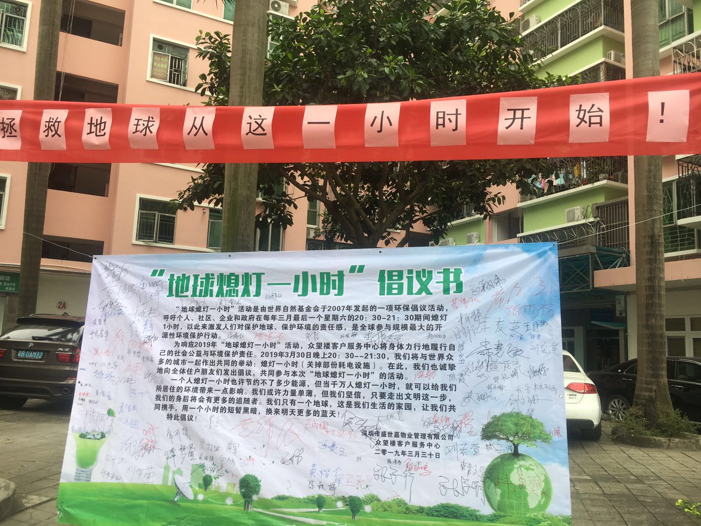 3月29—30日,盛世嘉物业积极响应由WWF(世界自然基金会)发动的全球最大的应对气候的公益行动——“地球一小时”,动员留仙居、城市公寓、众望楼、后海花半里、新木半里大厦等小区的业户参与到活动当中,以唤起广大业户对气候变化和节约能源的意识。让大家认识到,原来地球变暖是我们自己造成的,原来我们可以做很多事情,来改变这一切……