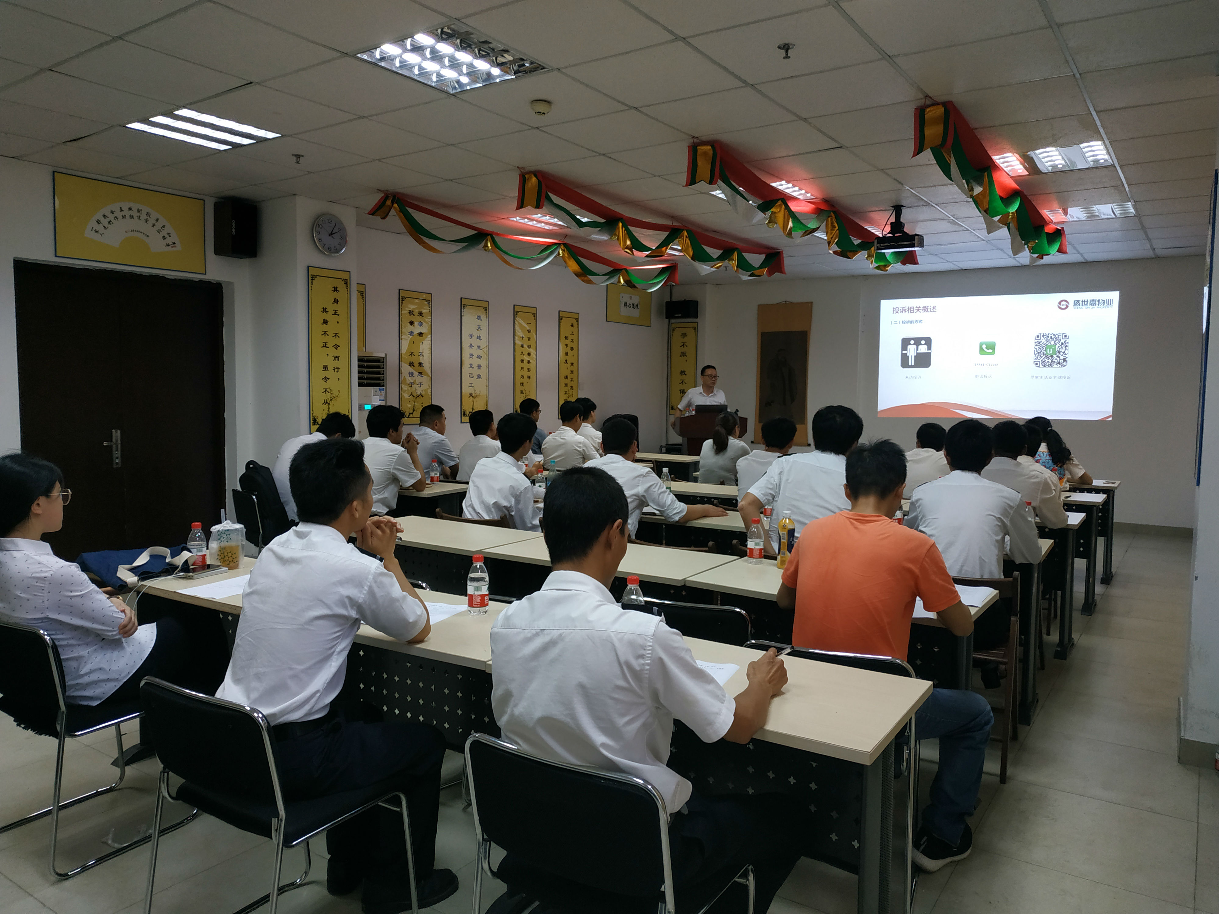 上午的培训在黄经理激情洋溢讲解企业文化内涵中拉开帷幕。期间分别介绍了公司的企业文化、企业理念、发展历程、公司架构、团队风采、管理制度、物业法律法规等几个章节,为新员工在融入公司环境的过程中注入了动力和信心。