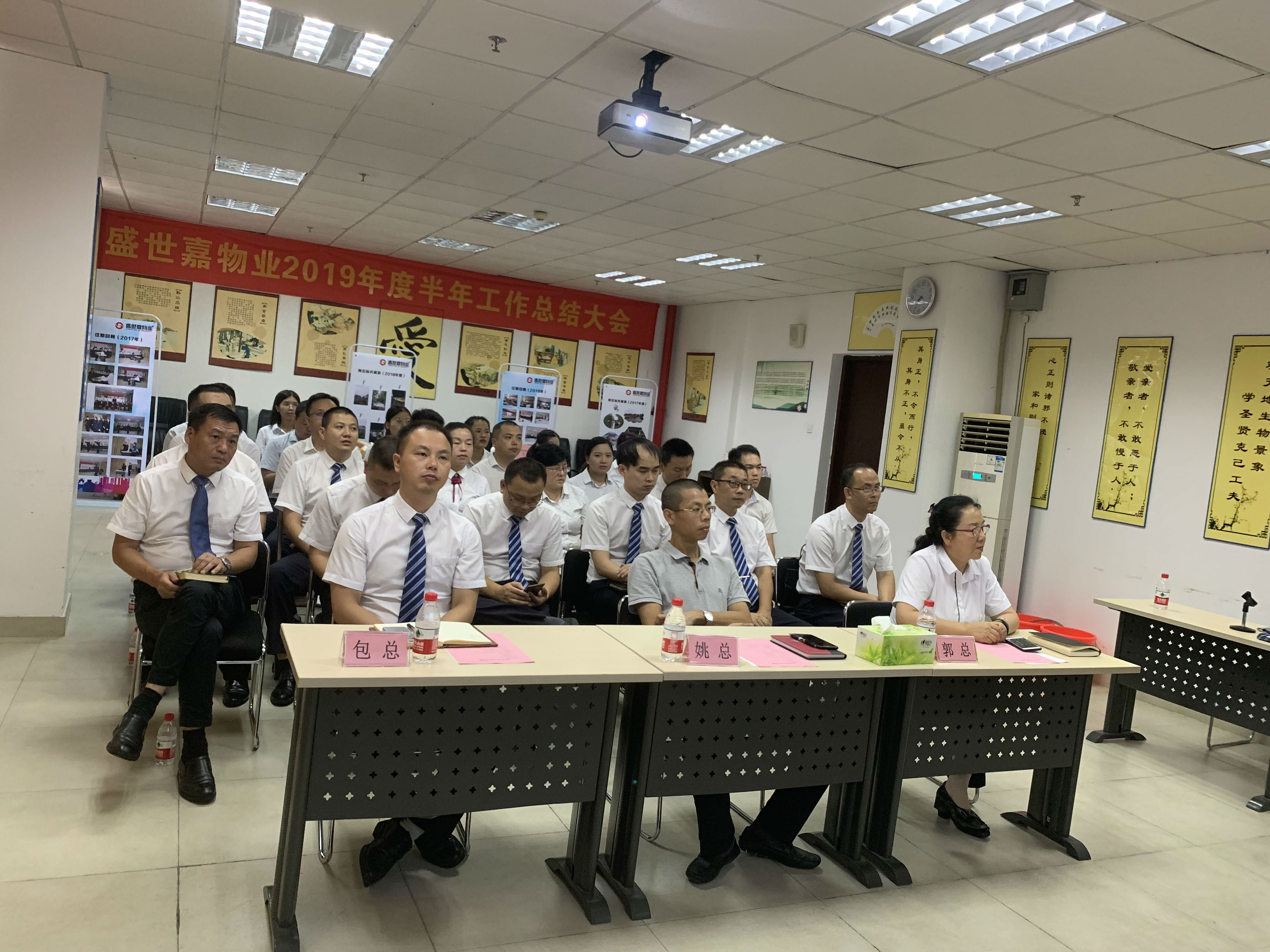 2019年7月15日,盛世嘉物业召开2019年上半年工作总结会议,会议由人事行政中心黄文锋主持,公司总经理姚理汉、常务副总经理包明勇、商业物业副总经理郭丽、各职能中心、各项目主要负责人等参加了本次会议。