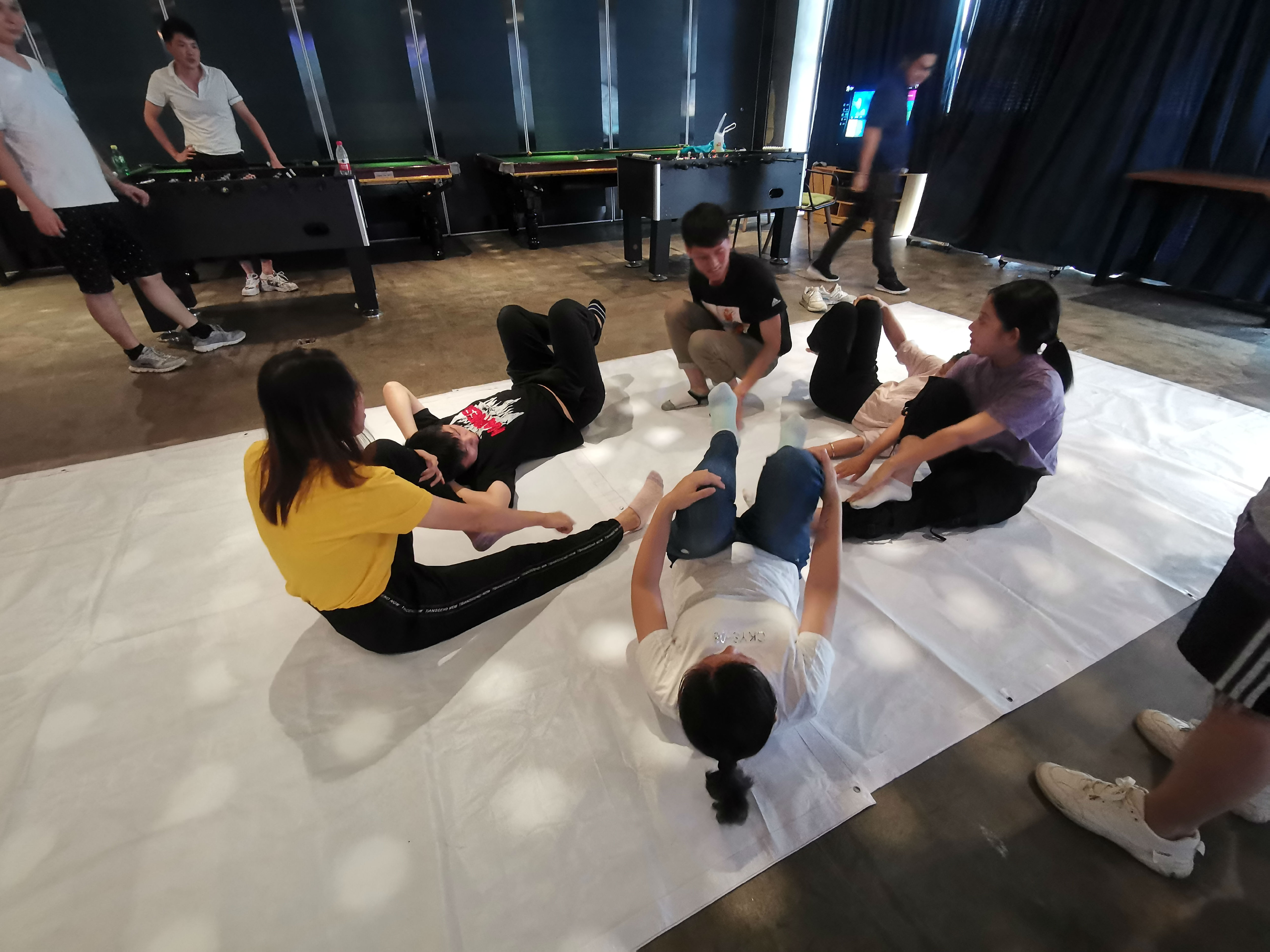 第二个游戏是小组拼图,这个游戏考察的是团队的灵机应变能力和队长的统筹指挥能力,能根据不同人的特点做不同的动作,更要量力而行,从而完成拼图获得分。