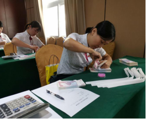 大赛第一轮是收款模块、工程模块的实操比武,收款进行的是点钞、翻打传票,工程模块进行的是PPR水管熔接和带互感器的电表安装抽签二选一实操。虽然比赛是在室内进行的,但炎热的天气并没有因为激烈的比赛而有所留情,参赛人员挥汗如雨,这并不影响选手的专注和热情。随着秒表的记录,选手一个接一个的举手示意完成比赛。比赛的过程、成果的展示,体现着选手精湛的技能。