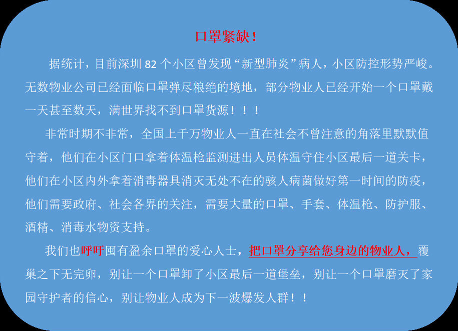 共同为我们身边的物业人送上口罩吧!