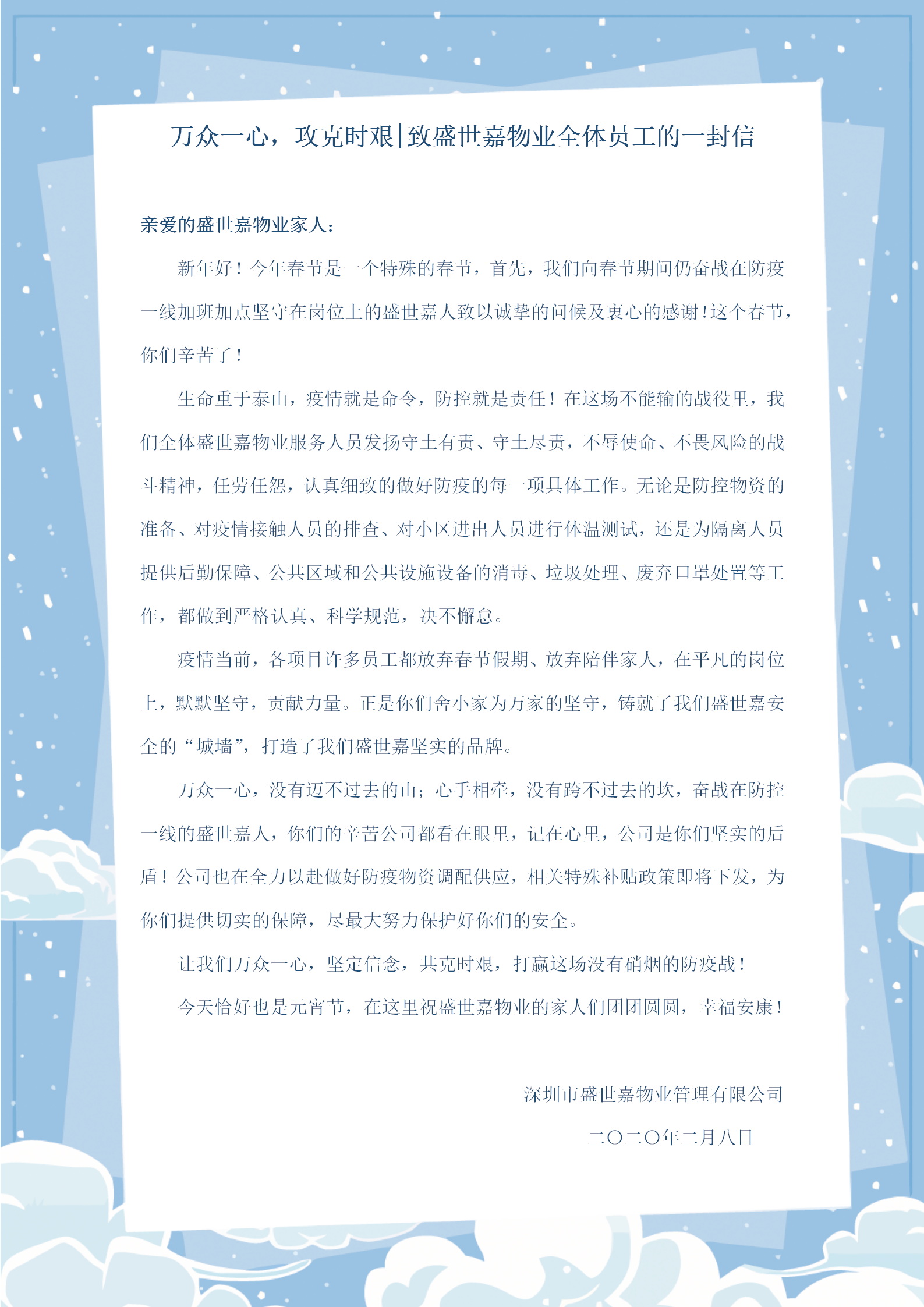 万众一心,攻克时艰|致盛世嘉物业全体员工的一封信