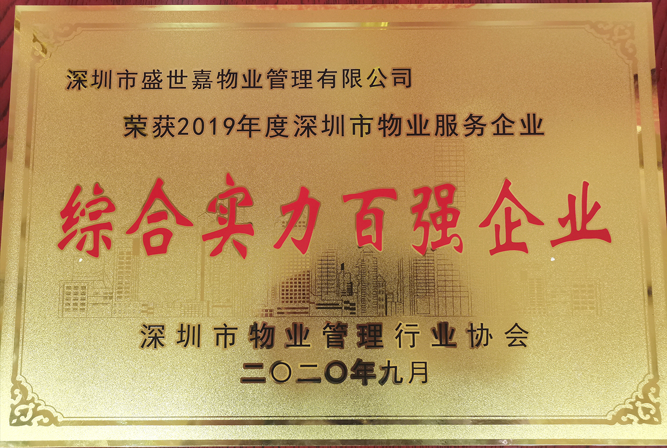 此次,盛世嘉物业能够获得“2019年度深圳市物业服务企业综合实力百强”,盛世嘉物业将看作是对过去的认可,也是对未来的激励。物业服务永无止境,盛世嘉物业将紧握“服务”之魂,为业主营造更美好的“嘉式幸福”生活。