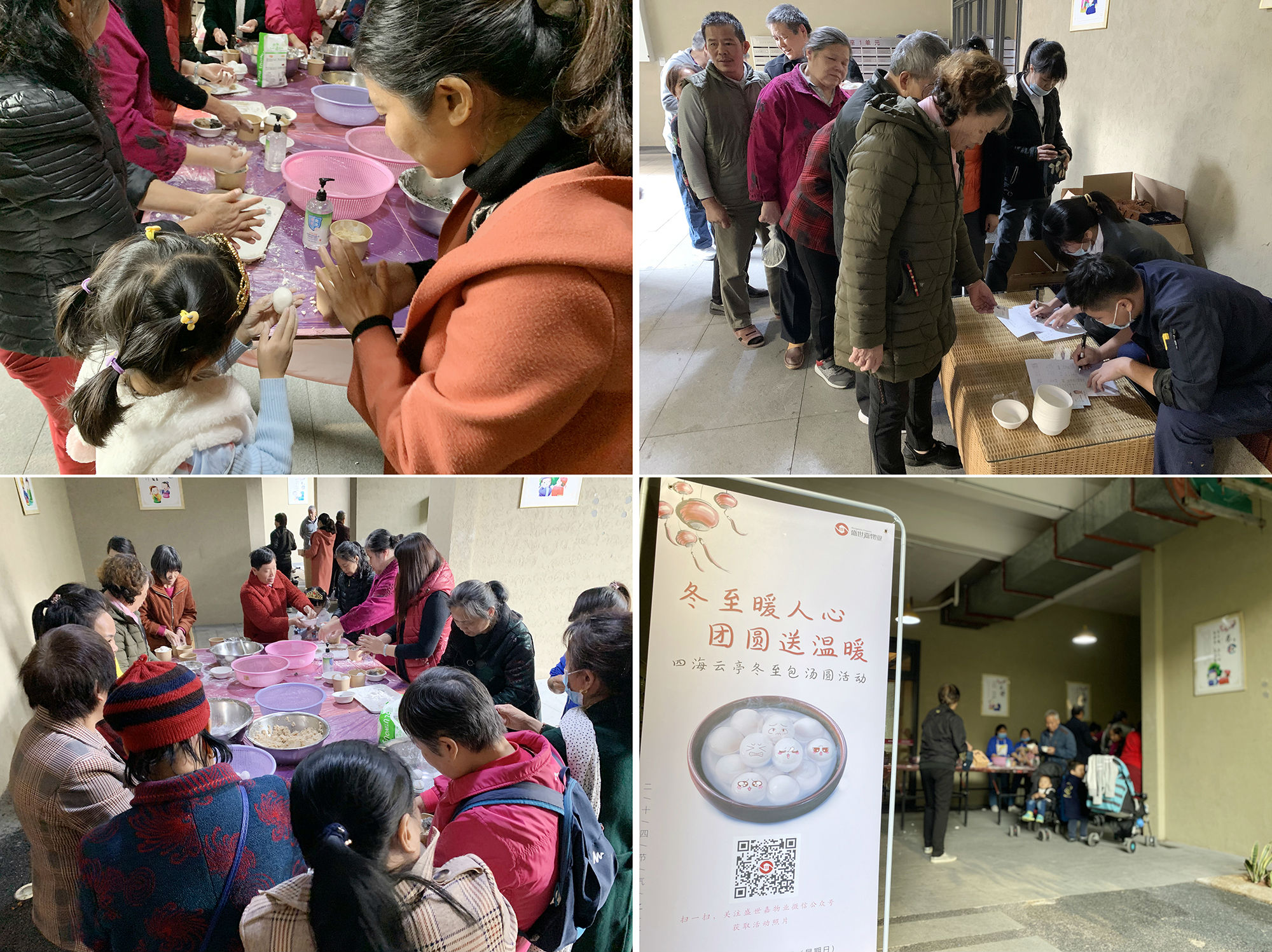 华侨城·四海云亭 ‖ 开展“冬至暖人心,团圆送温暖”冬至包汤圆活动,现场业主积极参与,在包汤圆的过程中大家其乐融融,有说有笑,相互交流包汤圆的经验。工作人员还为小区60岁以上老人送上手套、袜子,承包了他们一整个冬天的温暖。