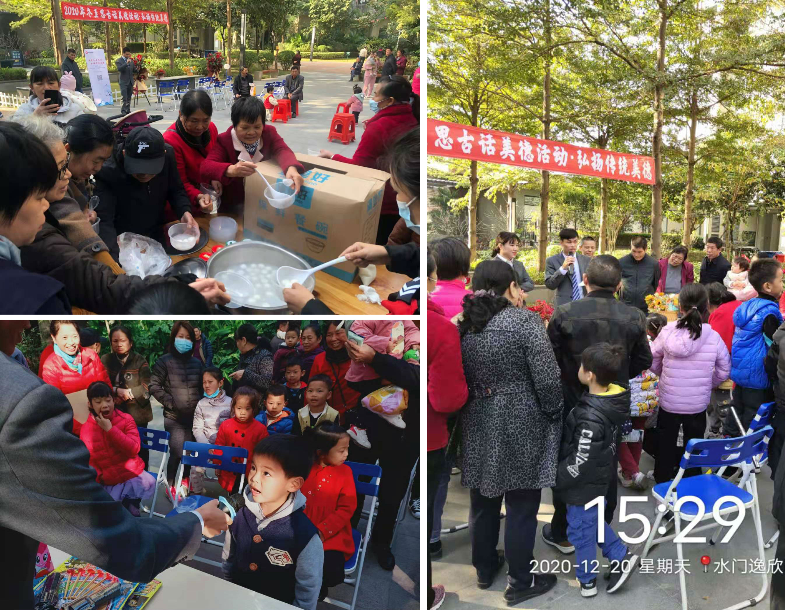 华侨城·四海锦园 ‖冬至节,又名冬节、大冬、亚岁、履长节,冬至节已有相当悠久的历史 。感受冬至文化,弘扬传统美德,管理处特举办冬至思古语活动,现场小朋友流利地背古诗,大家一起话古语,让传统文化发扬光大 。管理处还准备了象征团圆的汤圆供业主住户品尝,小区里充满欢乐的节日气氛。