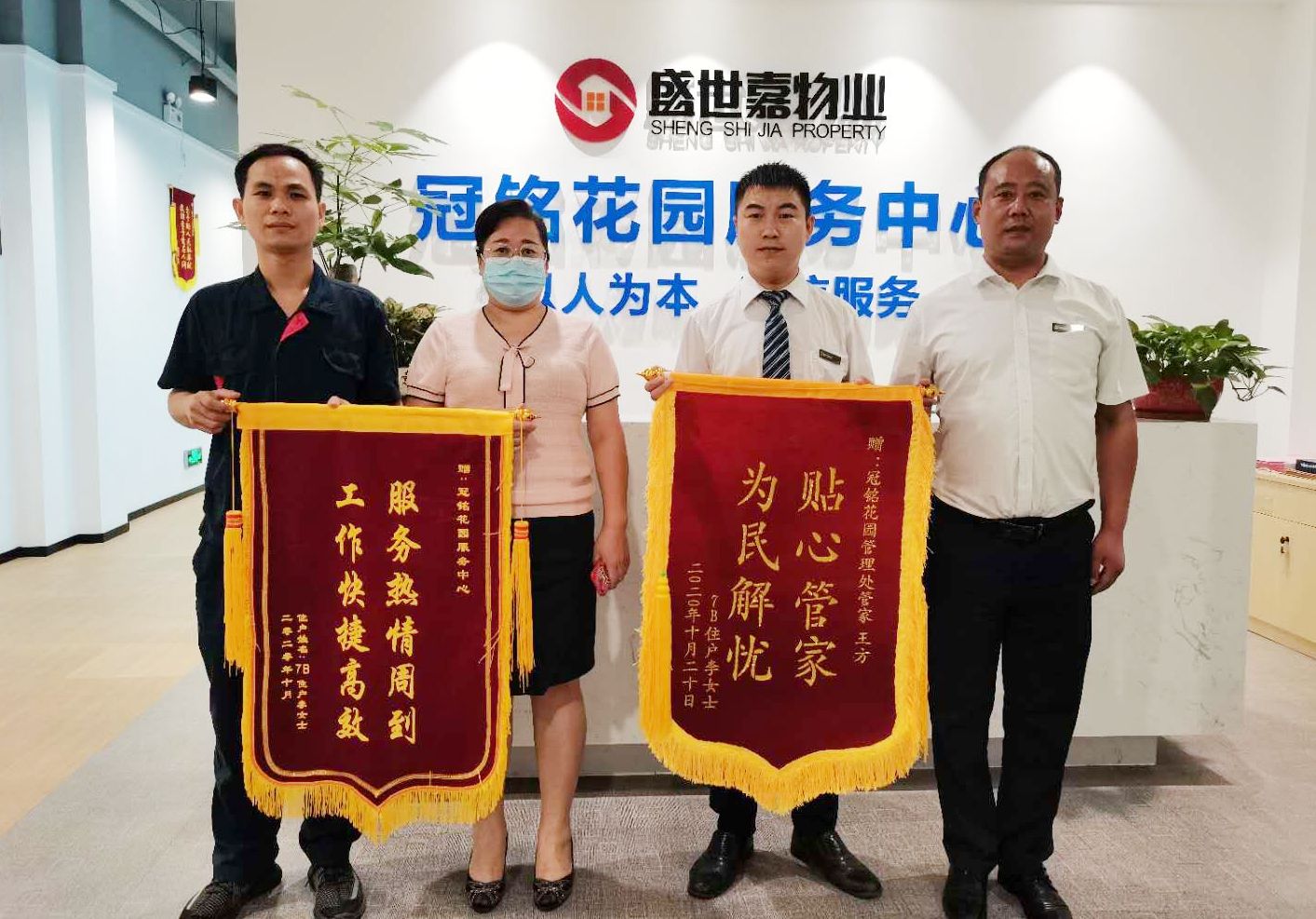 2020年9月30日,冠铭花园管家接到住户求助,家里有一位半失聪的长者不小心将厨房门反锁,厨房内燃灶未熄火。管理处工作人员达到现场后发现厨房已浓烟笼罩,情况紧急,赶紧先把老人安排到安全的地方,工程人员使用专用工具打开厨房门,关闭燃气灶,危险得以控制。为防止燃气管道失控发生爆炸事故,安管人员全服武装,排查现场危险隐患。最后帮住户把厨房门维修好,住户回到家里,看到这一幕,非常感谢物业工作人员,后送来“服务热情周到,工作快捷高效”锦旗一面。