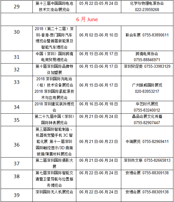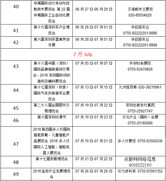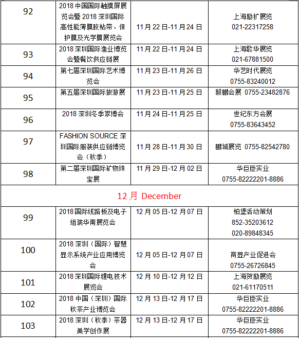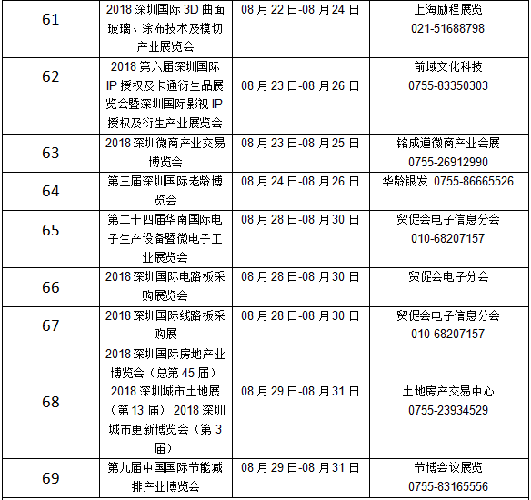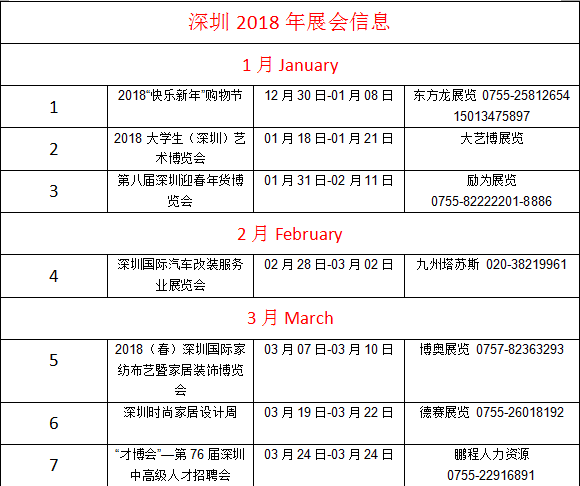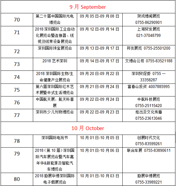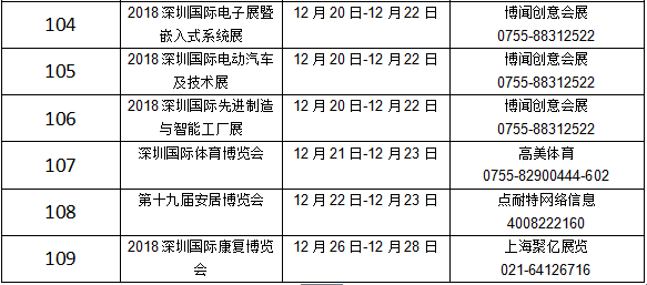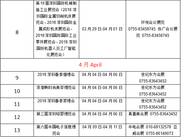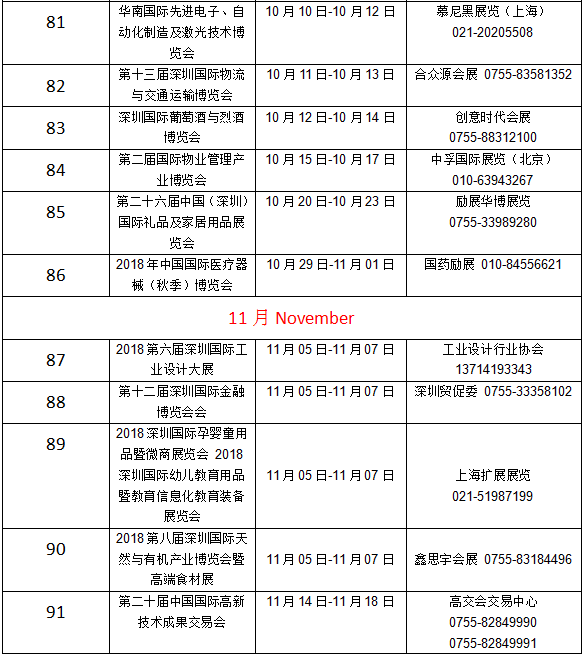 深圳2018年展会信息